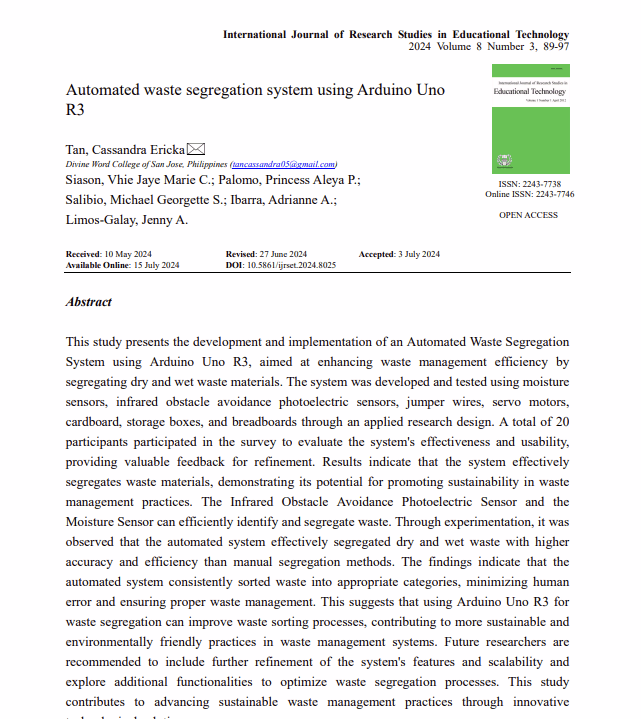 Automated waste segregation system using Arduino Uno R3
