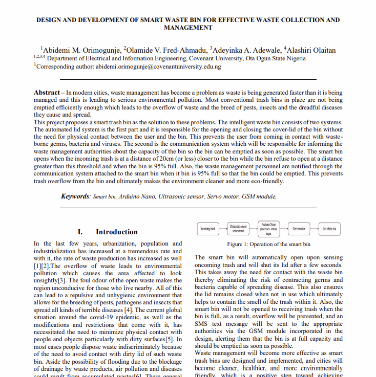 Design and Development of Smart Waste Bin for Effective Waste Collection and Management
